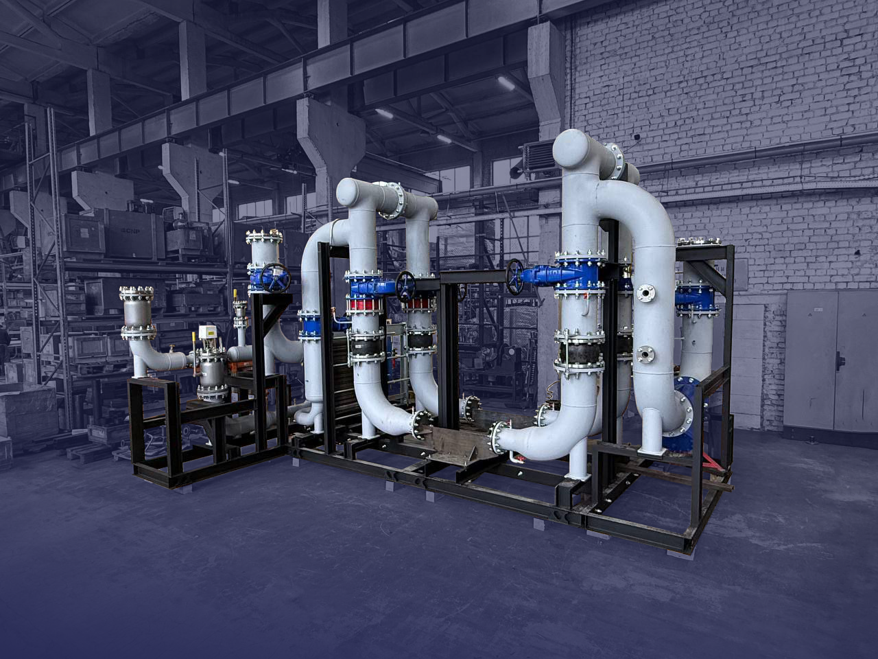 Данный блочный тепловой пункт является самым большим по габаритам и тепловой мощности произведенным компанией МФМК для объекта ЖКХ.
